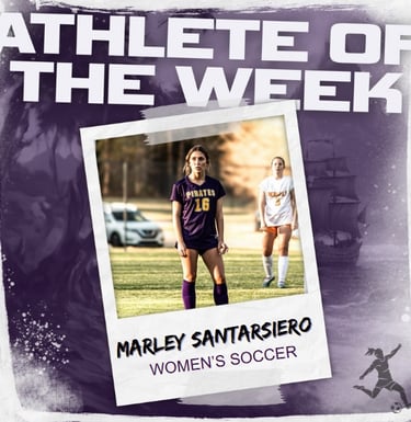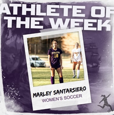 Congratulations to Marley Santarsiero for being our Pirate Athlete of the Week. Marley has been a key component and top goal scorer thus far for the varsity soccer team this year with 9 goals under her belt. She is the definition of a hard worker and knows how to rise to any challenges she may face. This includes in the classroom as she is a well rounded student athlete and we are proud to recognize her as a part of the women's soccer team.